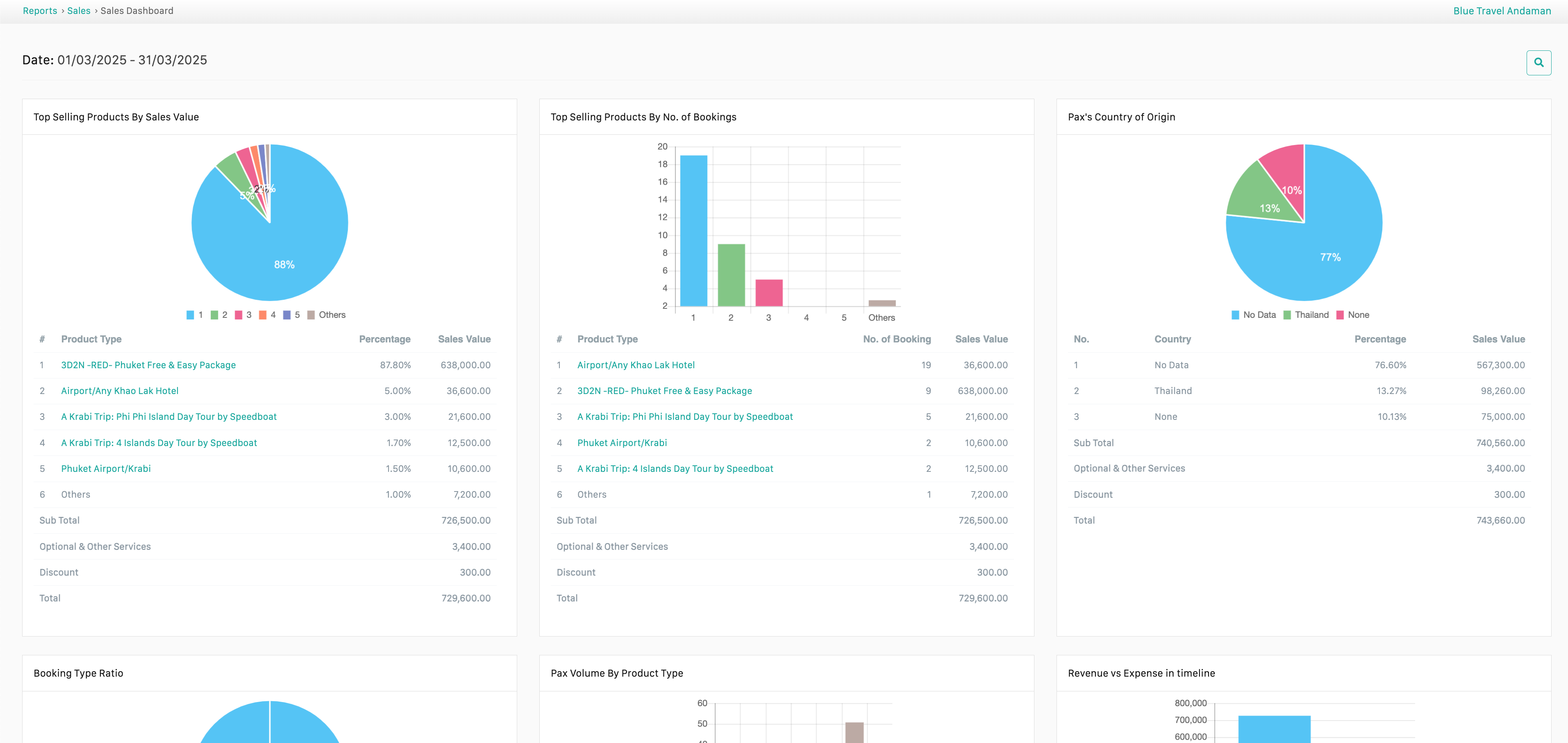 Provides advanced reporting and analytics on sales, finance, bookings, and customer data. Dashboards track key metrics like revenue trends and outstanding payments. TourSys generates financial reports, customer analysis, and sales forecasts, enabling data-driven decisions. Real-time insights help optimize operations, identify growth opportunities, and enhance customer service.